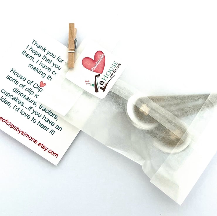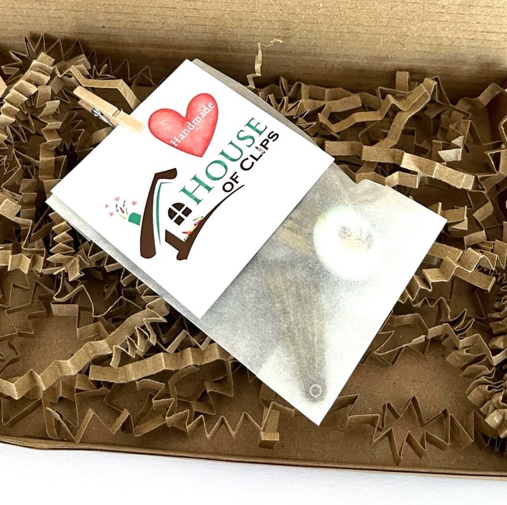 These Bee hair barrettes arrive in a pretty eco-friendly glassine bag, decorated with a peg and business card. All placed into a Kraft box nestled in lavender scented shredded paper. Making your parcel something to buzz about when it drops through your letter box!