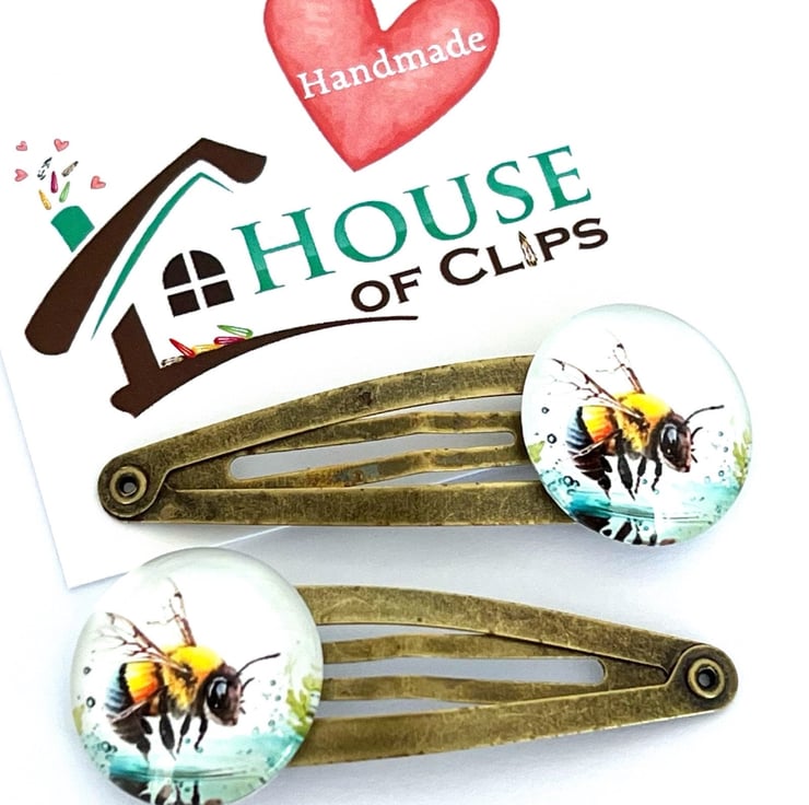Look After The Bee Clips x2 - Antique Bee Hair Clips - Bee Protection Snap Clips - Vintage Style Bee Barrettes - Bee Hair Slides - Bee gift