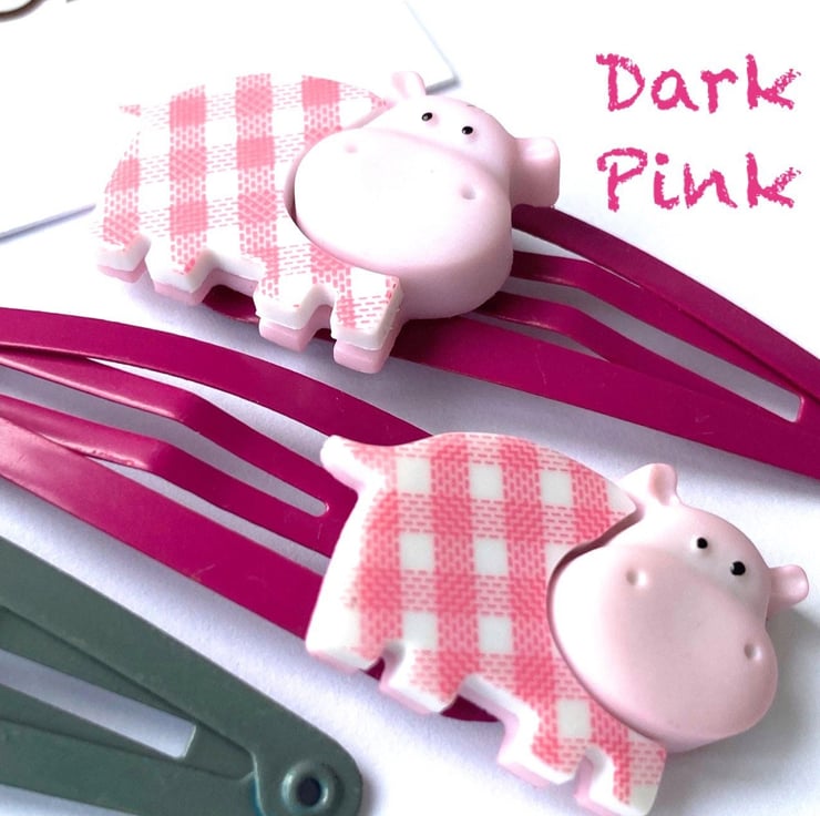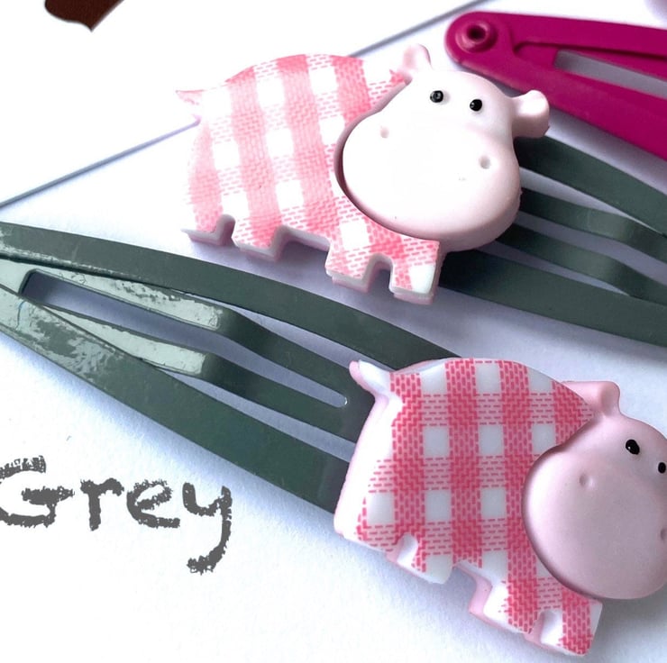 These hippo clips come in two different colour choices; Dark Pink and Grey. However if you would like these hippo clips on a different coloured hair slide then simply look at the colour chart (in photographs) and message me with your order.