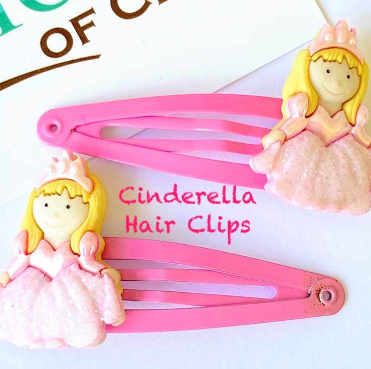 Beautiful Cinderella clips. These little dolls come in a pink shimmer dress it s like wearing a little tiny toy in your hair!