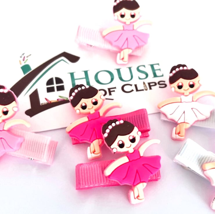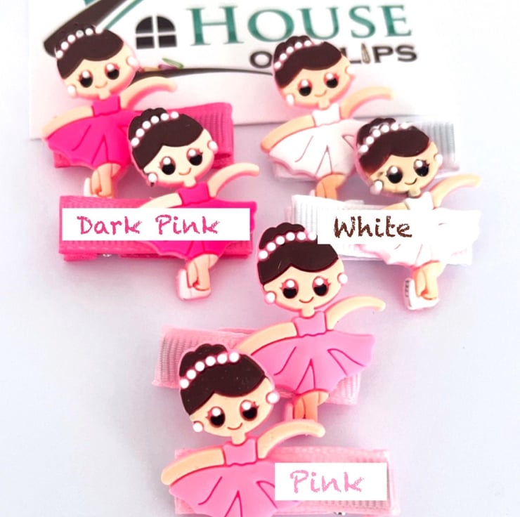 These pink ballerina hair clips are sure to put a smile on any little ballerina s face. There are three crocodile clip colours to choose from: pink, dark pink and white material covered crocodile clips.