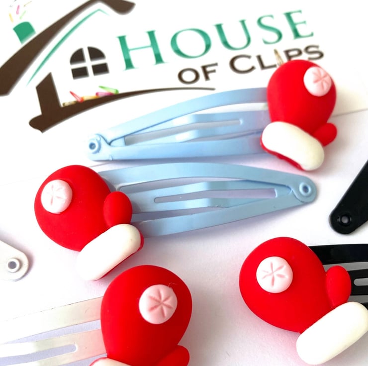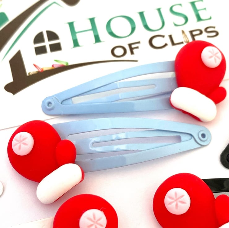 Xmas Mitten Hair Clips x2 - Christmas Gloves Hair Clips - Xmas Hair Grips - Xmas Gift Idea - Stocking Fillers - Xmas Barrettes - Niece Gift