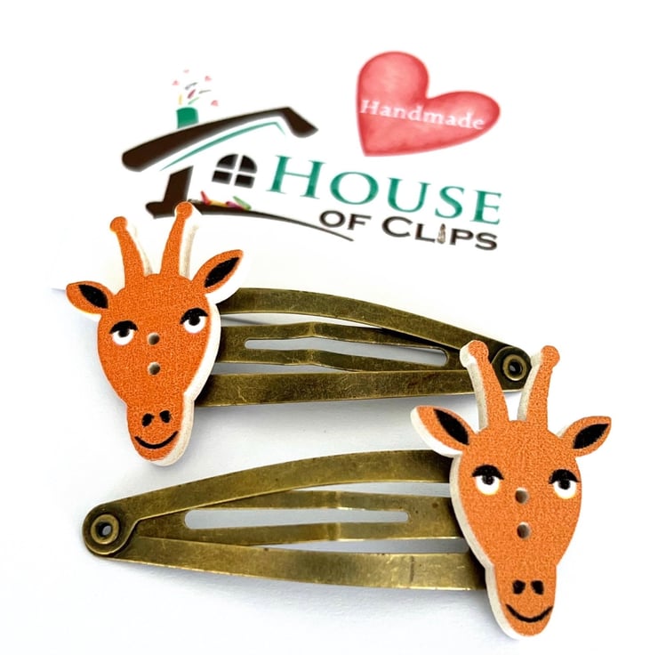 Victorian Hair Clip Collection - Gilda Giraffe Hair Clips - Giraffe Hair Snaps - Giraffe Zoo Gift - Animal Hair Slides - Vintage Hair Clips
