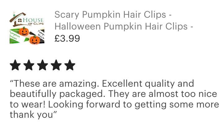 Theses fun Halloween hair clips arrive in a eco-friendly glassine bag with a house of Clips card and sticker, attached with a tiny peg. All clips are placed in a bright metallic envelope making it the best Halloween present