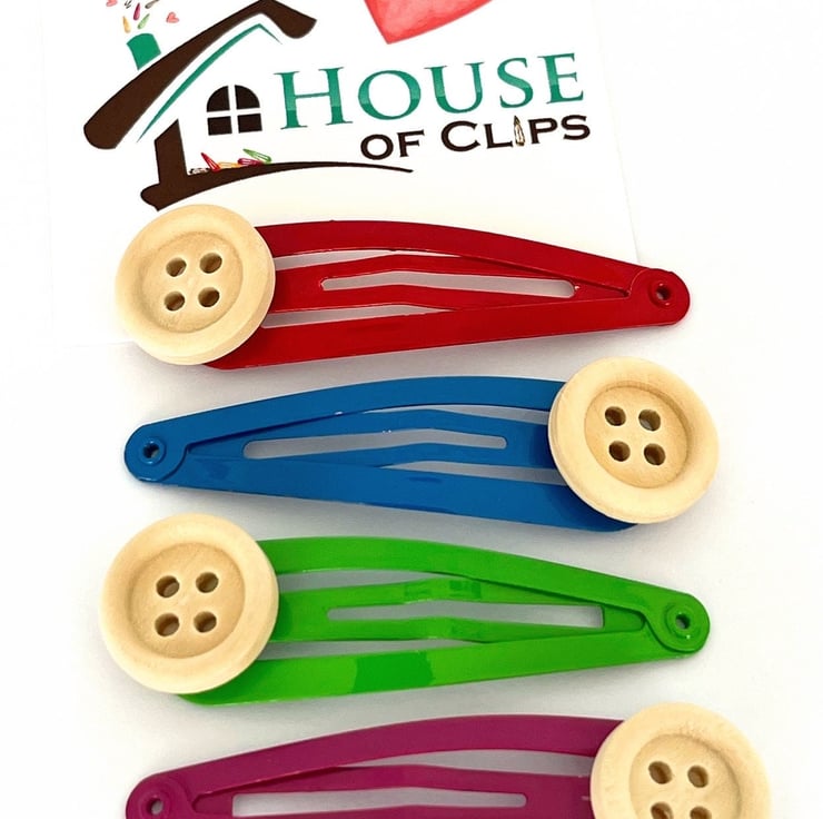 Patchwork Button Hair Clips x4 by House of Clips - Button Hair Clips - Vintage Button Hair Clips - Pretty Hair Clips Ladies - Snap Clips