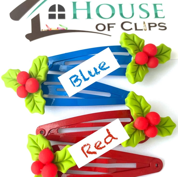Xmas Holly Hair Clips (2x clips per order)