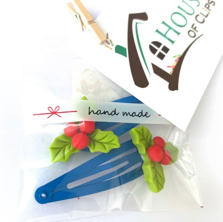 These Christmas hair clips are incredibly detailed, with markings on the holly leaves and three perfectly formed Holly berries. Measuring 5.5 cm in length. They make a great stocking filler or little Xmas gift for a niece, daughter, granddaughter and not forgetting the boys too!