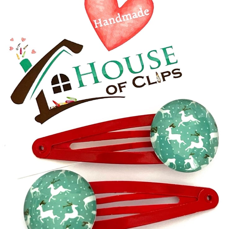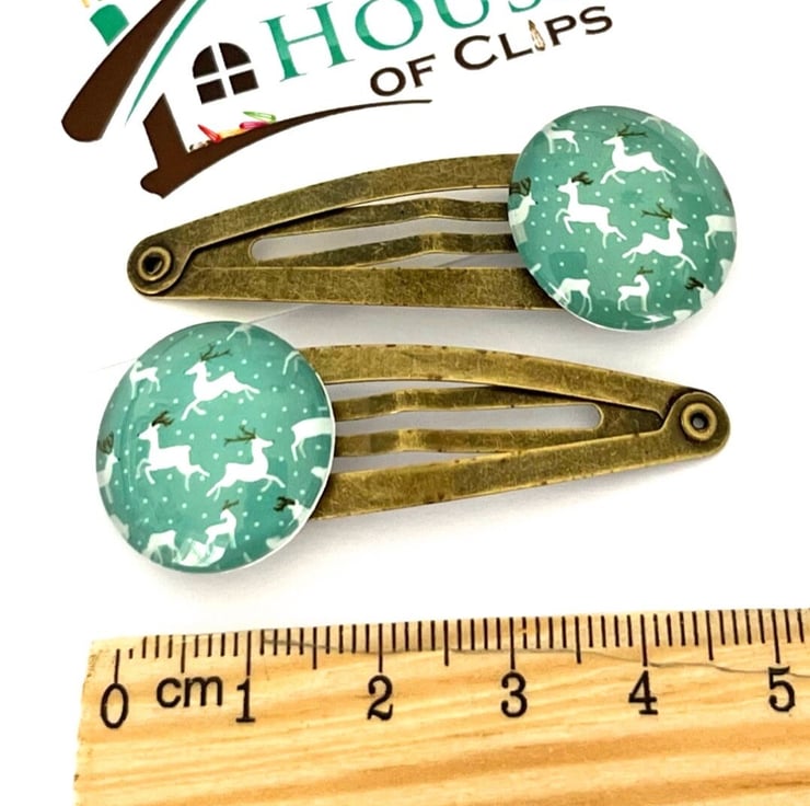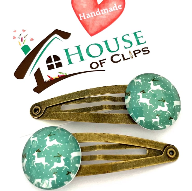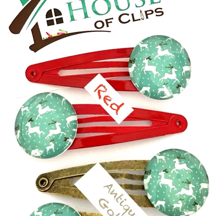 Wonderful retro Xmas hair slides to get you in the Christmassy mood. These clips are shown on either vintage gold or red snap clips. However if you would like a different coloured clip then simply look at the colour chart and message me with your order