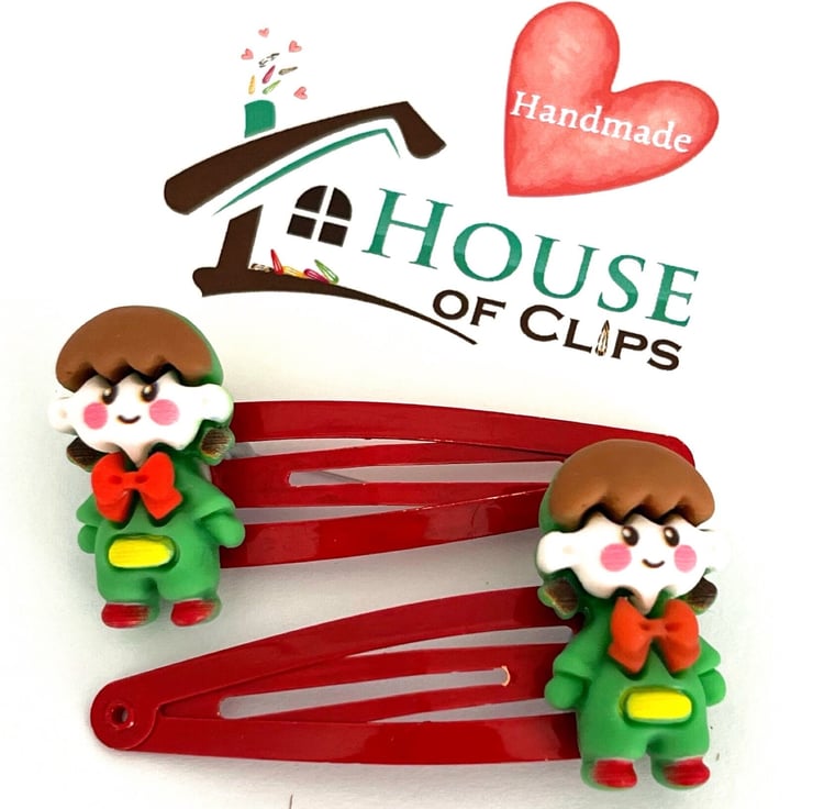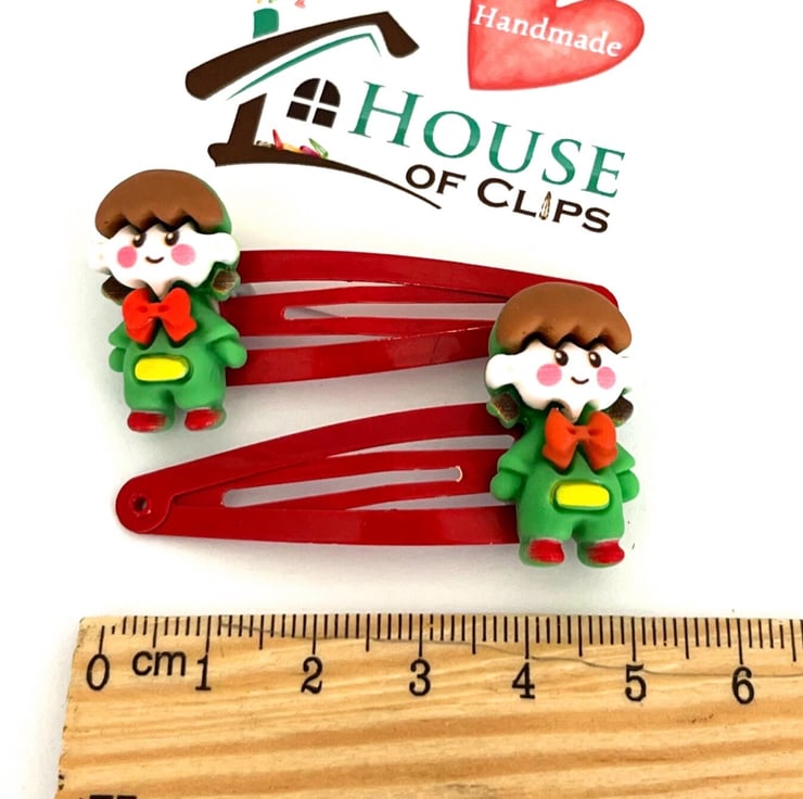 Melvin The Naughty Elf Hair Clips x2 - Elf Barrettes - Xmas Elf Hair Slides - Christmas Elf Gift - Stocking Gift Under 5 - Advent Calendar