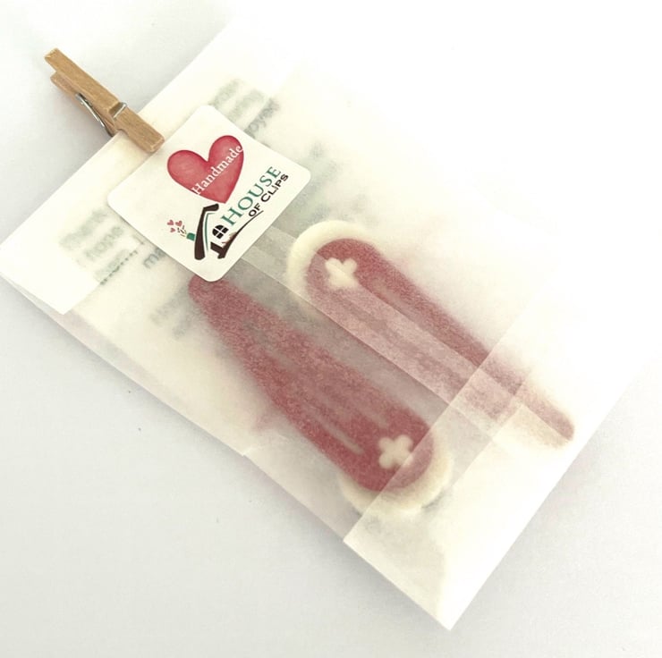These Leprechaun hair clips arrive in a eco-friendly glassine bag, decorated with a peg and business card nestled into lavender scented shredded Kraft paper. All sent in a small Kraft letterbox making your order something to truly smile about as it drops through your letterbox!