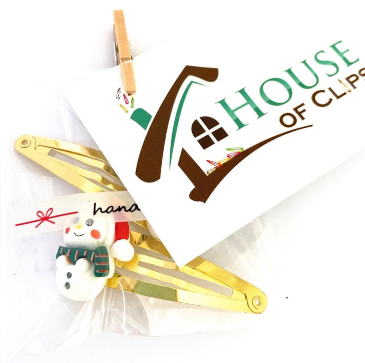 All of my Xmas hair clips arrive in a hand-made printed cellophane bag sealed with a house of clips festive sticker; decorated with a peg and business card all placed into a metallic protective envelope.