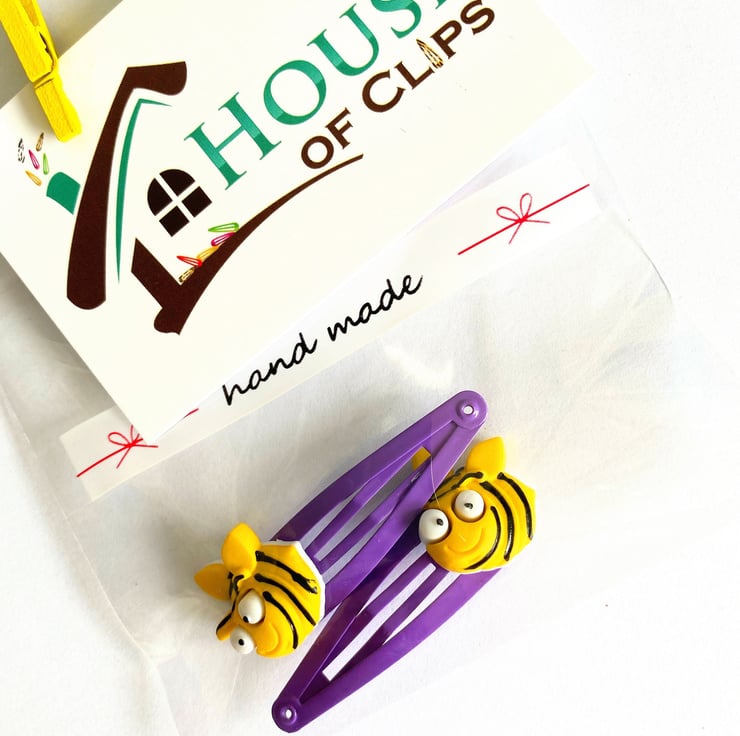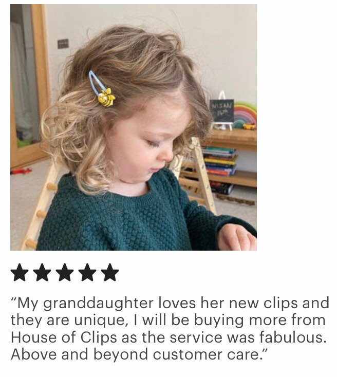 The clips arrive in a pretty cellophane bag, decorated with a peg and business card. Placed into a metallic protective envelope which I then like to decorate with fun stickers. Making your parcel something to smile about when it drops through your letter box!