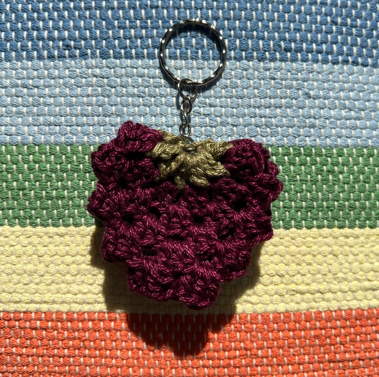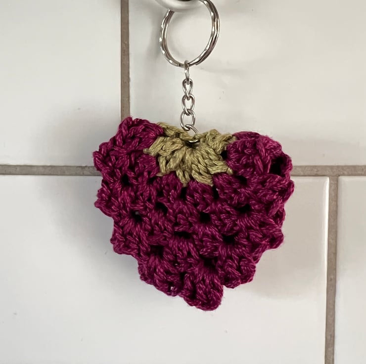 Handmade crochet Blackberry keyring, with cotton yarn and metal keyring with chain.