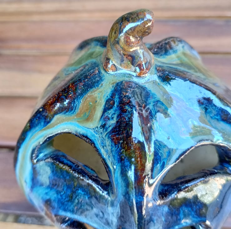 Glazed ceramic tea light lantern. Recommended for use with battery tea light only.