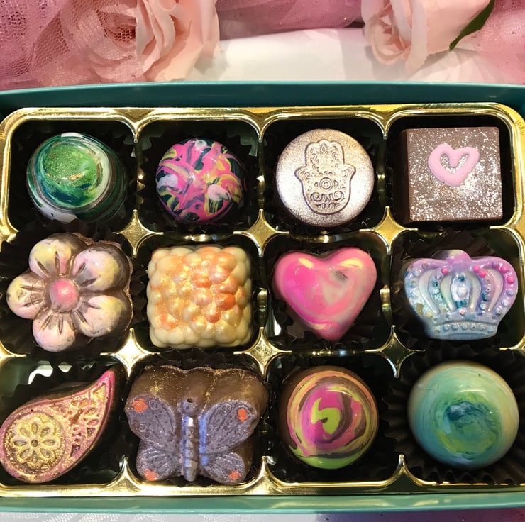 Luxary Artisan Belgian Chocolates Hand Made Hand Painted - Chocolate Gift Box 12