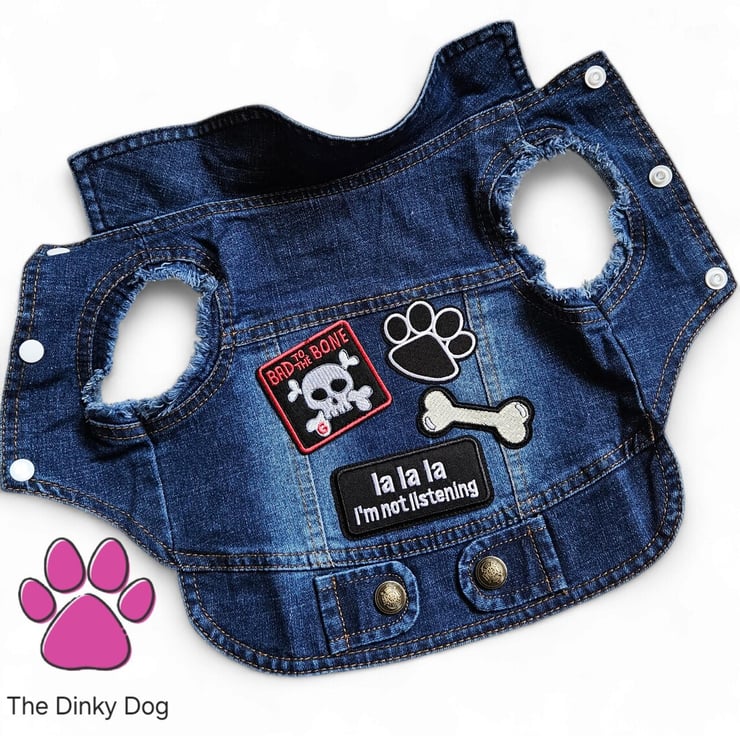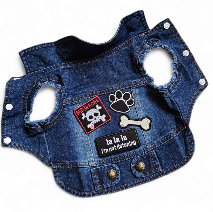 Turn heads and tails with this 'Bad to the Bone' doggy denim. Featuring a rugged design and a rebellious attitude, it's the ideal fit for dogs who aren't afraid to show their true colours!