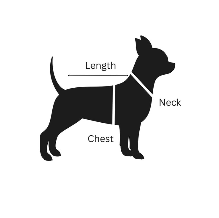 The back length is 9.5 inches and the chest girth is approximately 13.5 - 14 inches. Check the above images to see how to measure your dog.