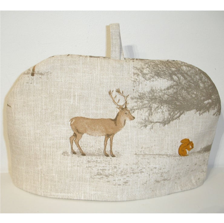 Measures 10" (26cm) wide and 6" (16cm) tall. Fits comfortably over a small 1-2 cup Teapot. Perfectly fits the 18oz Stump Teapot as shown in the pictures (with the dachshund fabric).