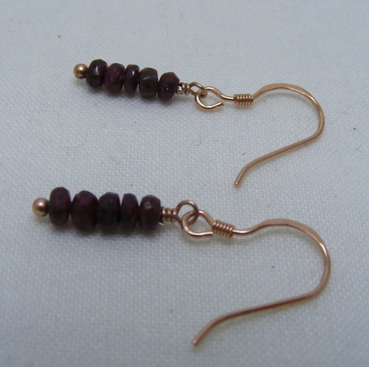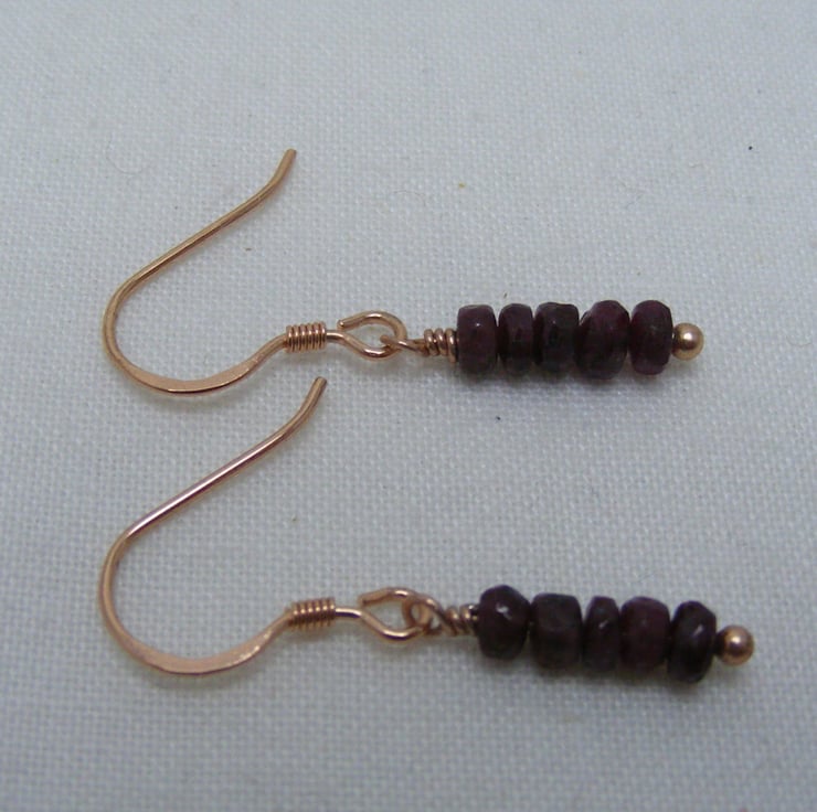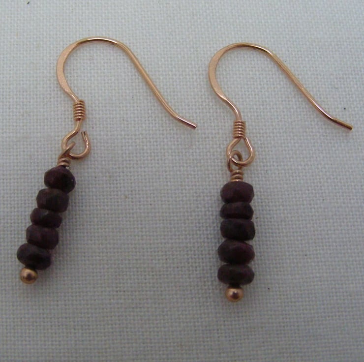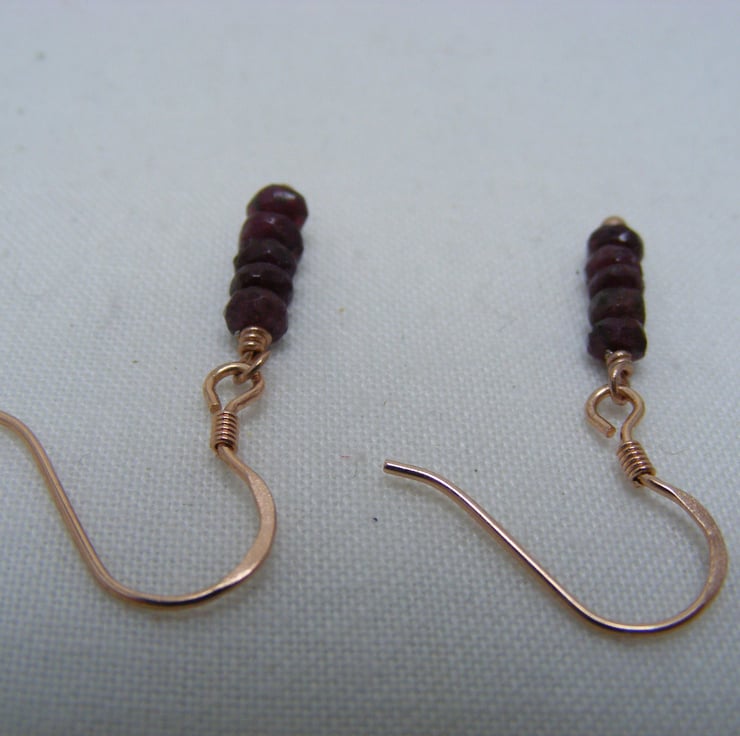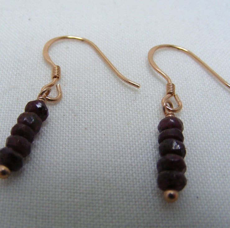 This gorgeous pair of gemstone earrings are handmade with, 3-4mm ruby faceted rondelles, 925 rose gold plated sterling silver findings and 925 stamped rose gold plated sterling silver ear wires.