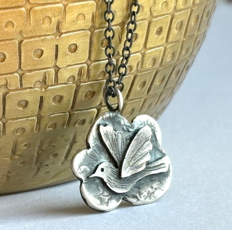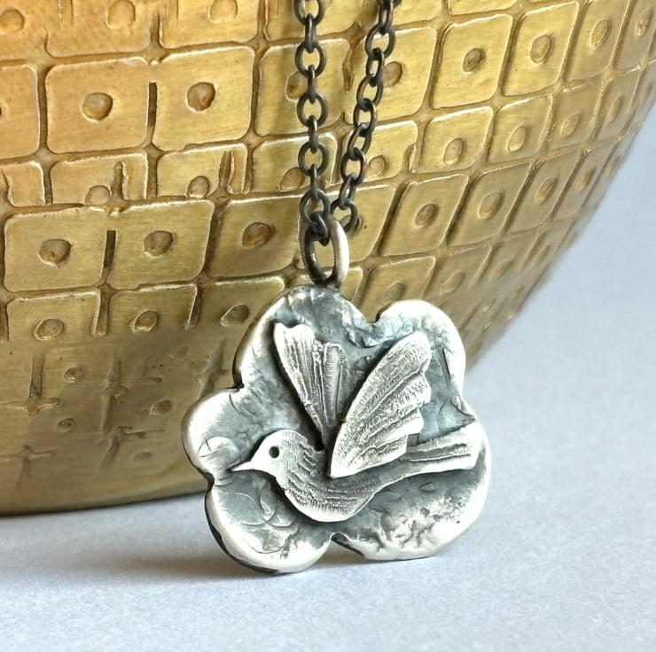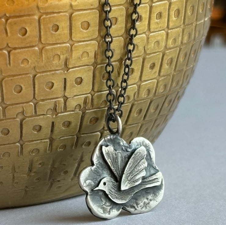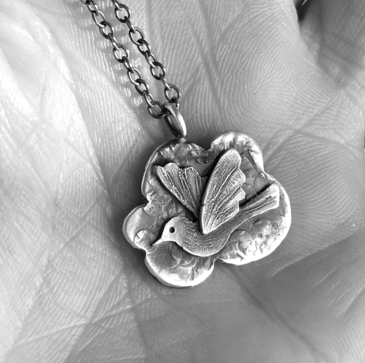 This cute necklace has been hand made from sterling silver… the cloud part is made from recycled silver. Each piece is cut by hand, engraved, then soldered together, oxidised and polished back to a satin finish. It is hung from an 18 inch sterling silver chain that is oxidised to a dark grey finish.