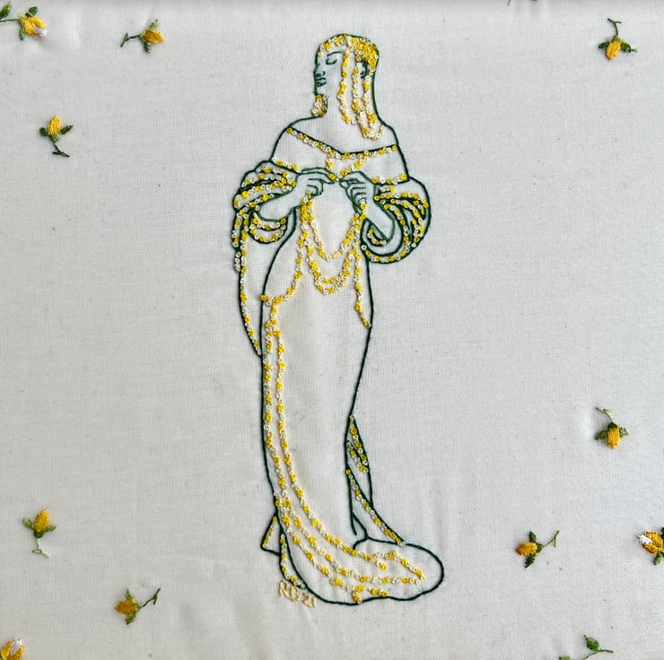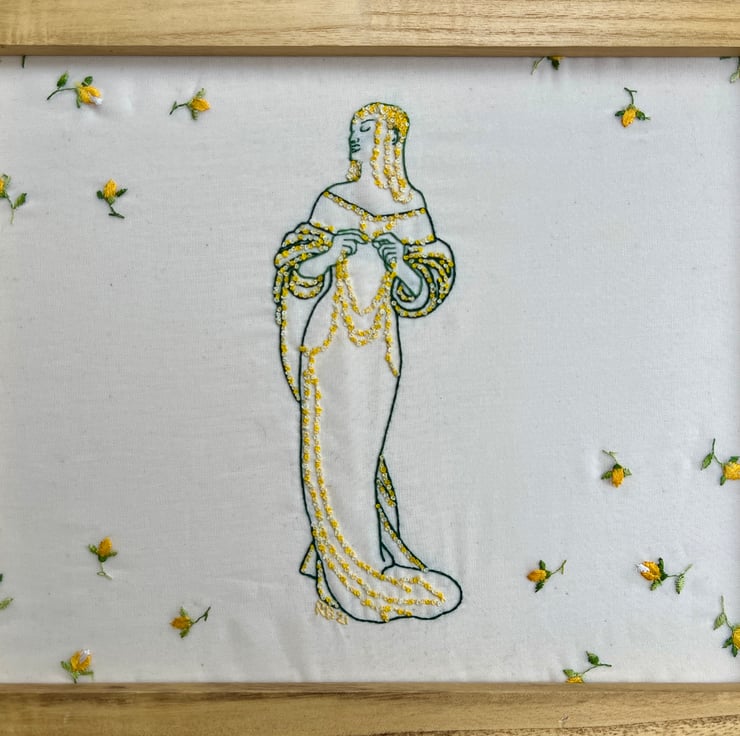 My embroidered art explores the intersection of nature, heritage and culture. I draw inspiration from folklore, the natural world and personal experiences to create works that are both evocative and deeply symbolic. By meticulously hand stitching onto inherited and reclaimed fabrics, I breathe new life into materials steeped in history and memory. My pieces explore themes of the interconnectedness of nature, resilience, and the complexities of the human experience.