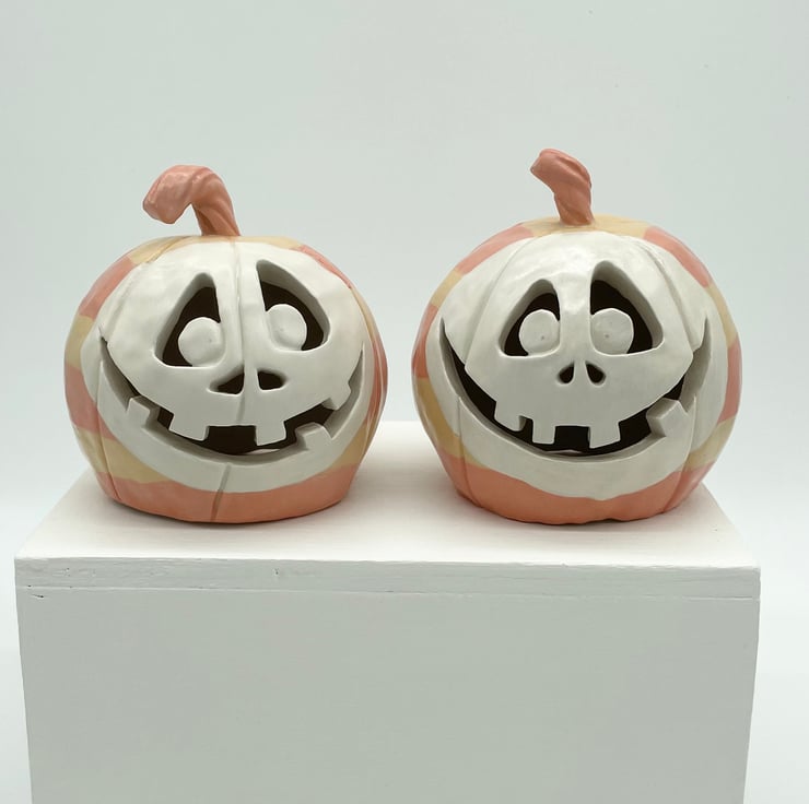 I make things from clay, and figured I should make pumpkins for Halloween too. I see lots of ceramic pumpkins, but I wanted to make my own version that was unique and lighthearted.
