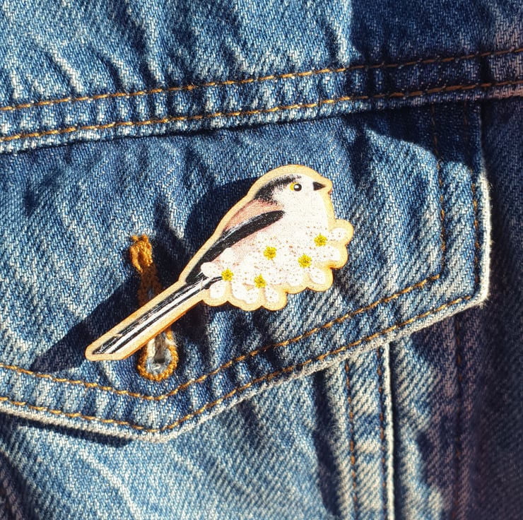 I illustrated this little long tailed tit surrounded by blossom and it is then printed on to wood and laser cut for me by a lovely small business in Gloucestershire.