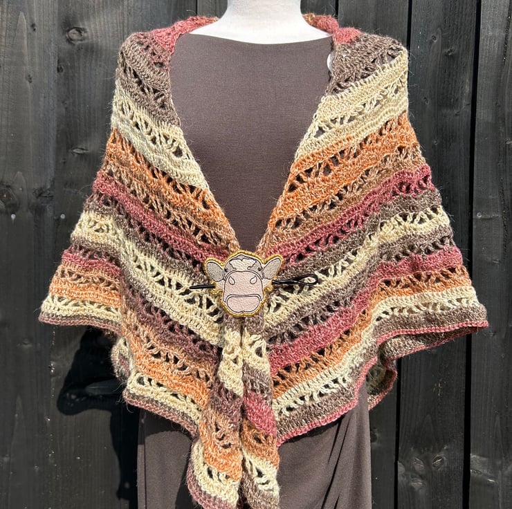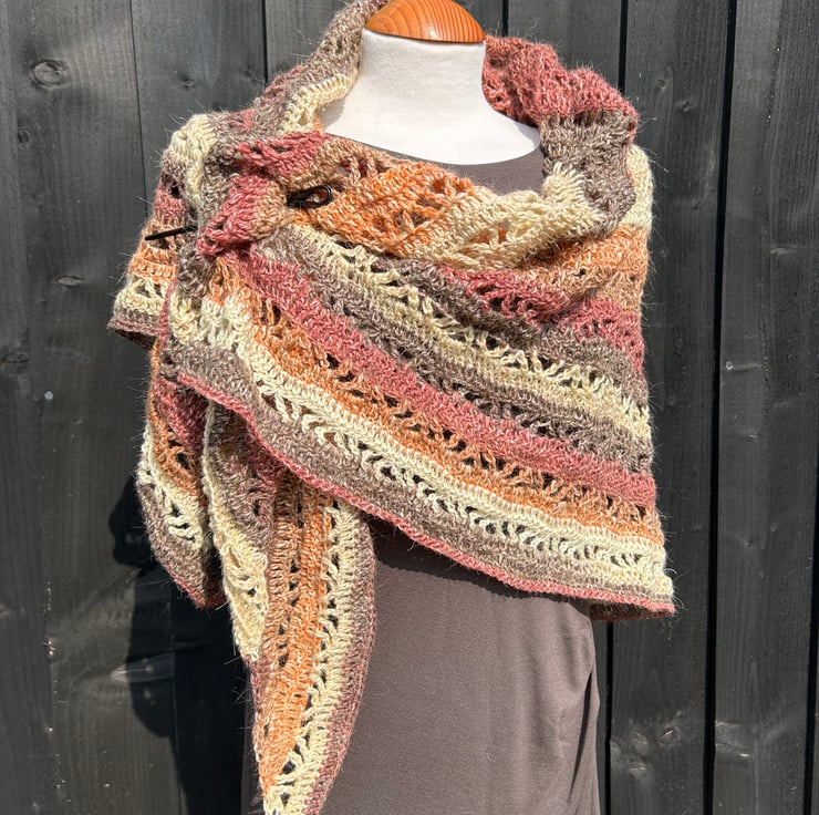 Autumn Colours Alpaca Triangle Lace Handmade Shawl Wrap Scarf