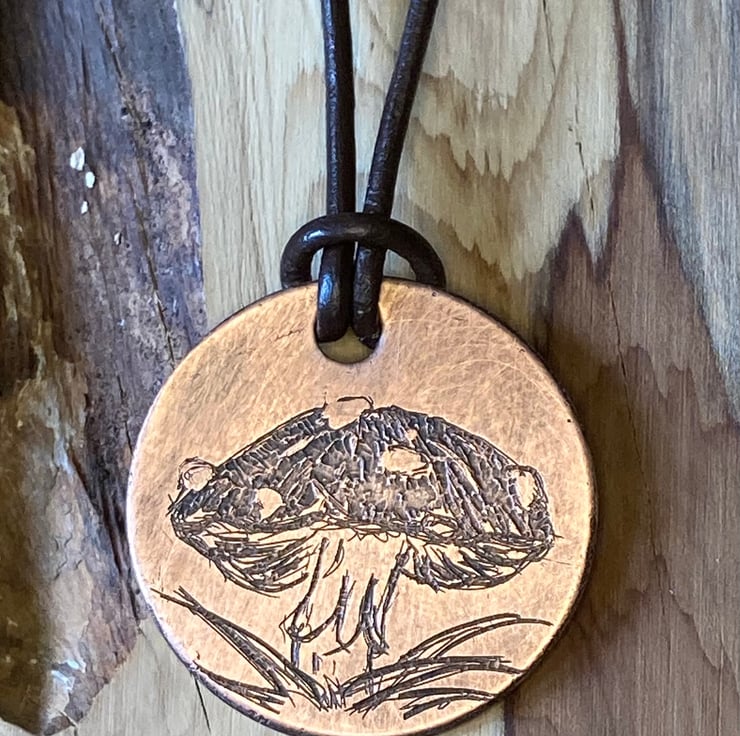 Fly Agaric Mushroom - Handmade Etched Copper Earrings LARGE