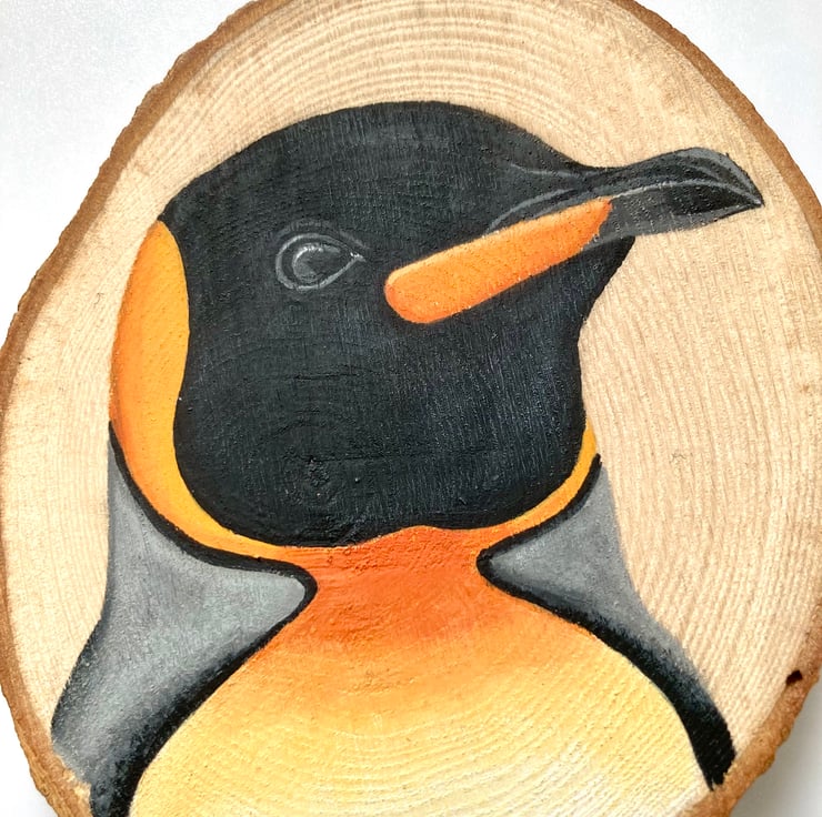 This one features a hand painted a king penguin.