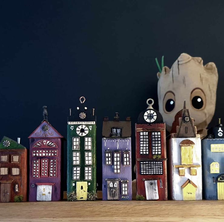 Capture the essence of Amsterdam today and embrace the wonky beauty of its remarkable buildings and through my Wonky Driftwood creations from the west coast of Scotland.