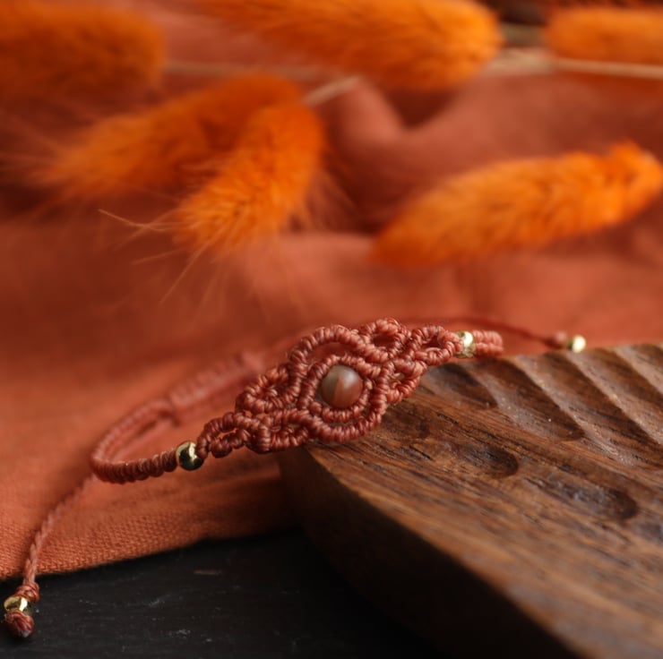Macrame bracelet with Tourmaline in rust colour with jasper