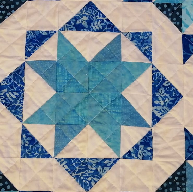 Handmade Patchwork Quilt - Blue and White Batik Fabrics 155 cm square 61"