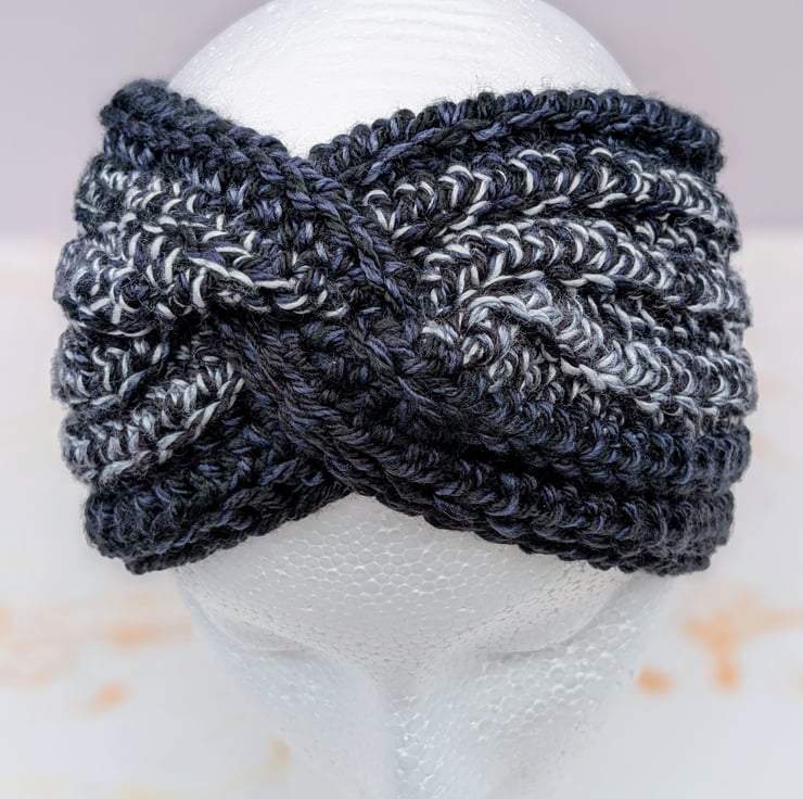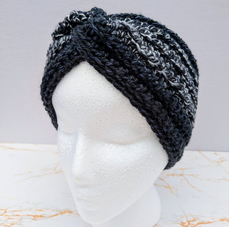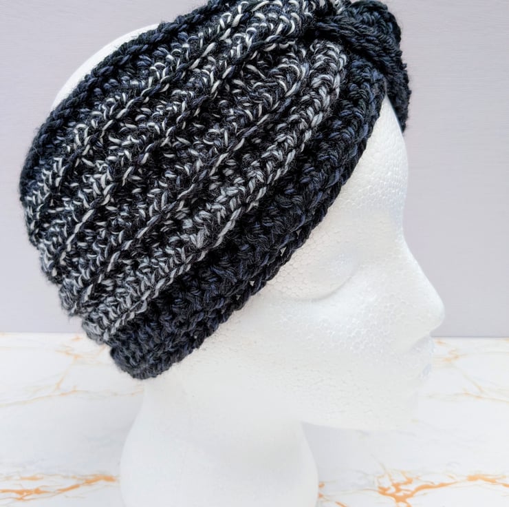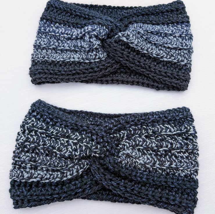 Twisted crochet earwarmers in black,white,grey shades.