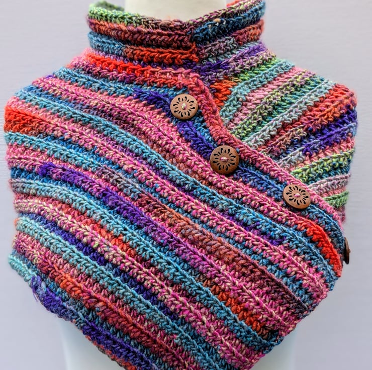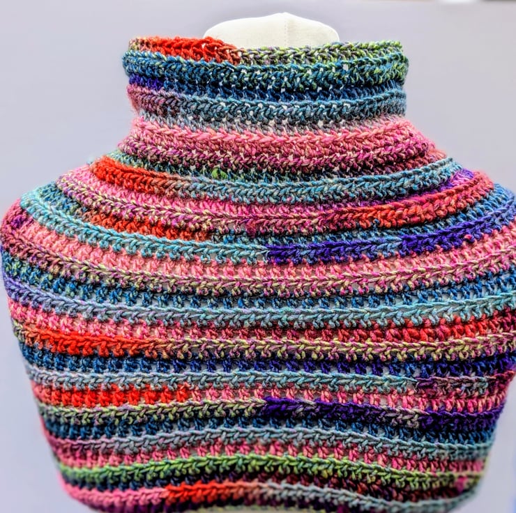 Crochet cowl in beautiful colors.