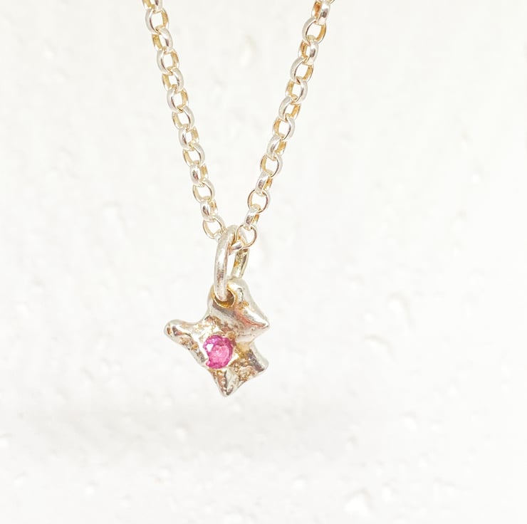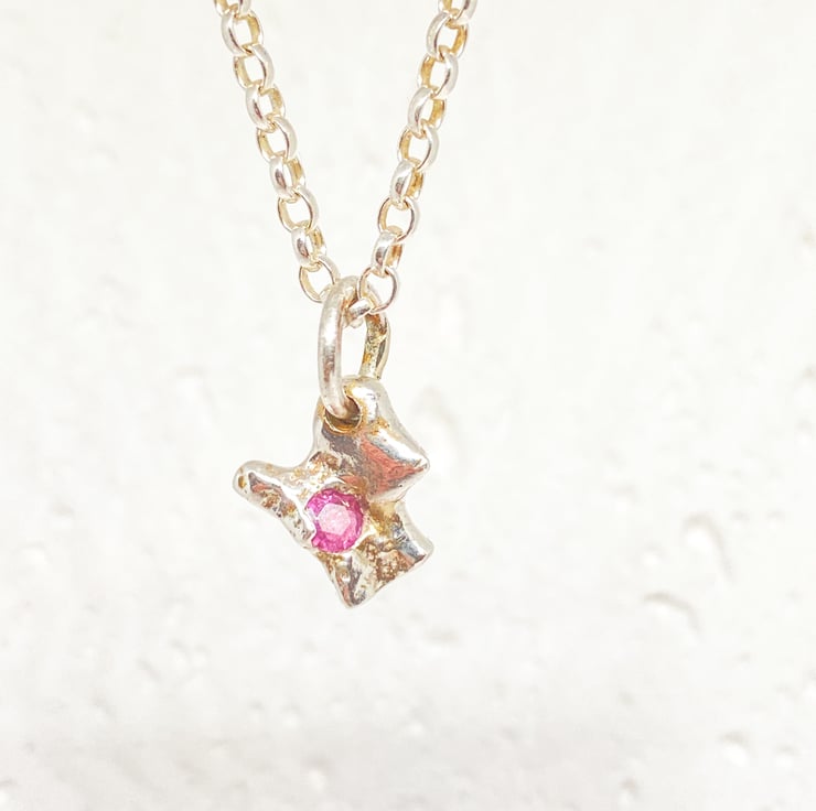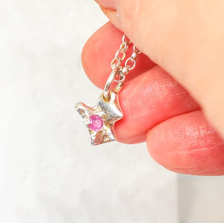 A pink sapphire set into sterling silver using the sand casting method. Unique and one of a kind