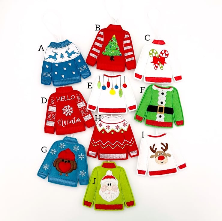 Christmas themed Jumper hanging Decorations for your Christmas tree.