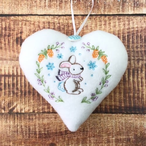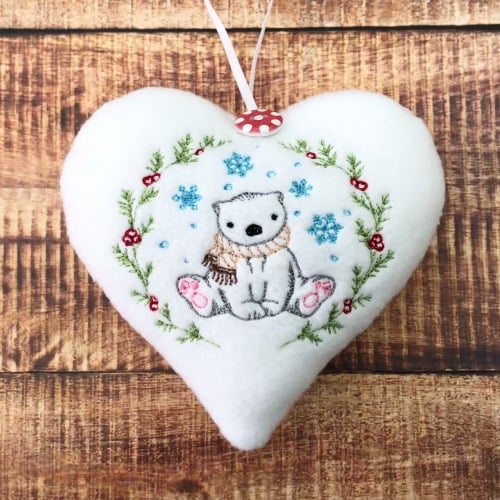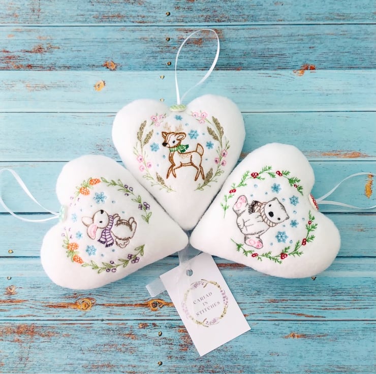 These gorgeous White soft fleece hanging hearts with vintage machine embroidered winter scenes would make a beautiful gift for a babies 1st Christmas, Christmas Decoration or a Baby Shower Gift.