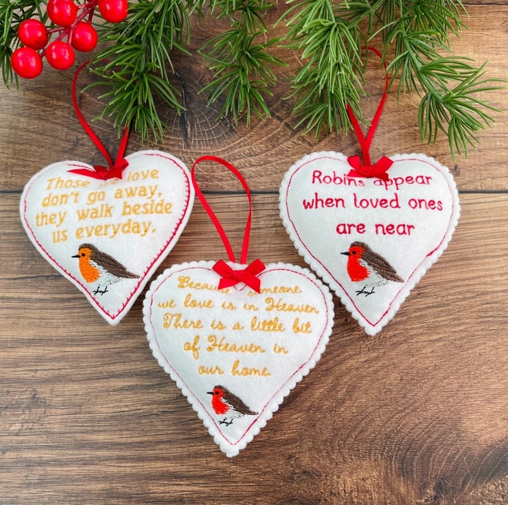 Robin Memory Handmade Hanging Heart Decorations