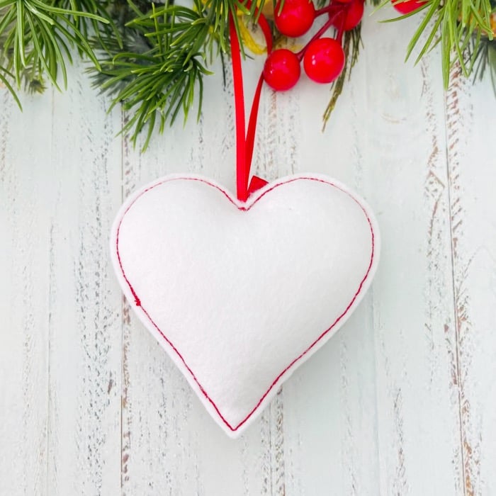 Handcrafted from a Wool Blend Felt, filled with a high-grade hollow fibre polyester filling and has a satin or Grosgrain ribbon for hanging. Hand cut and finished with a decorative bow.