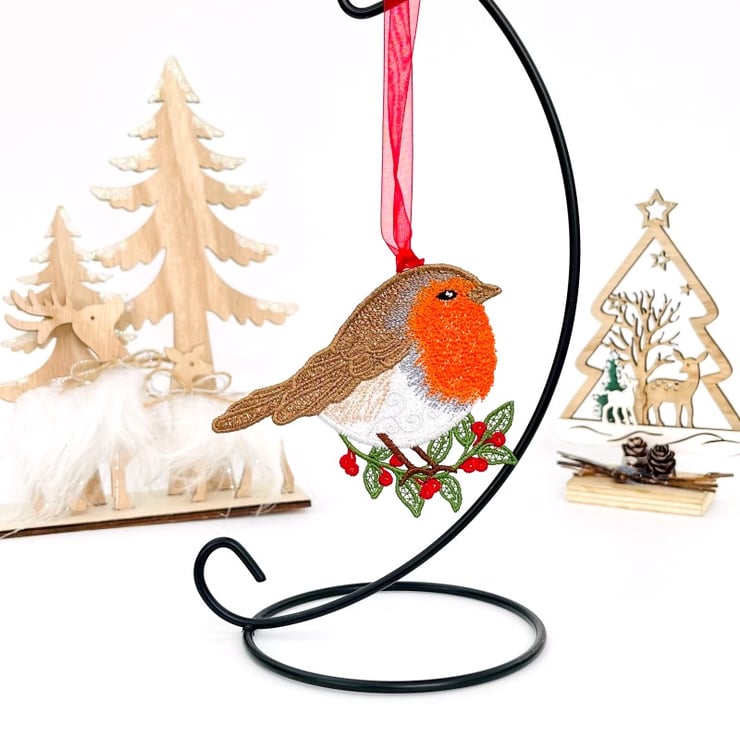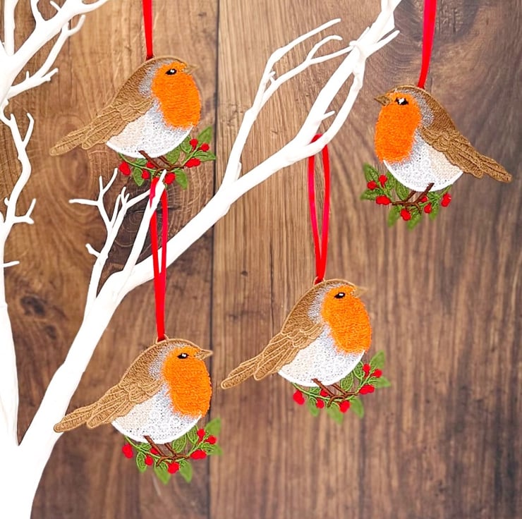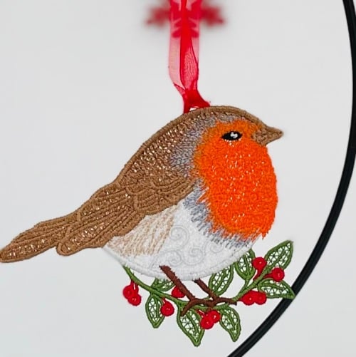 Made from good quality machine embroidery thread and finished with an Organza or Satin ribbon for hanging.