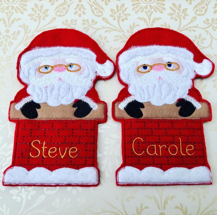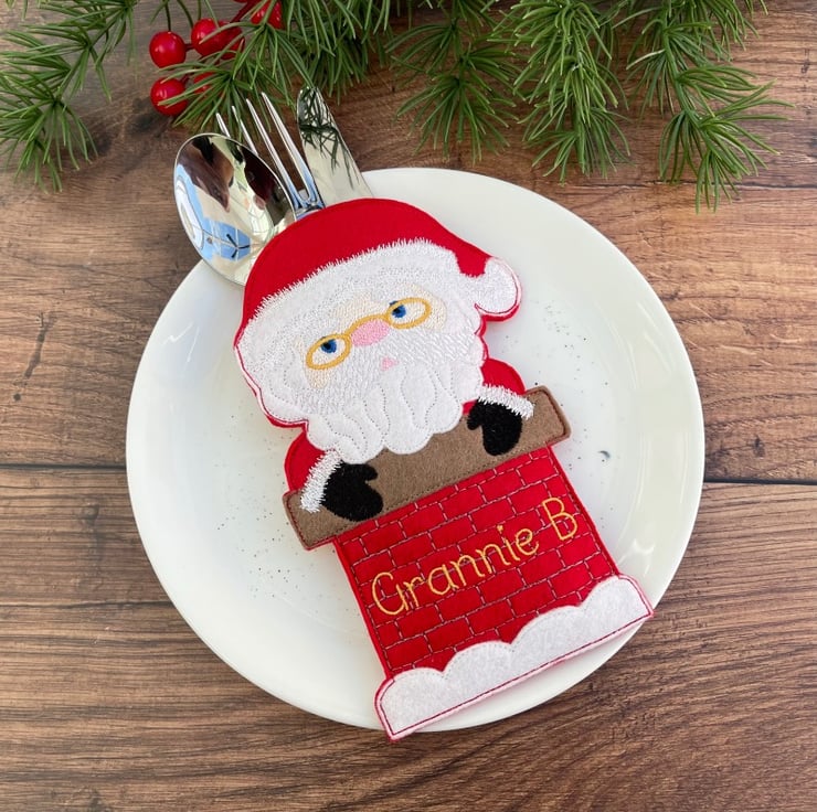 Santa in Chimney Felt Cutlery Holders Personalised Gift