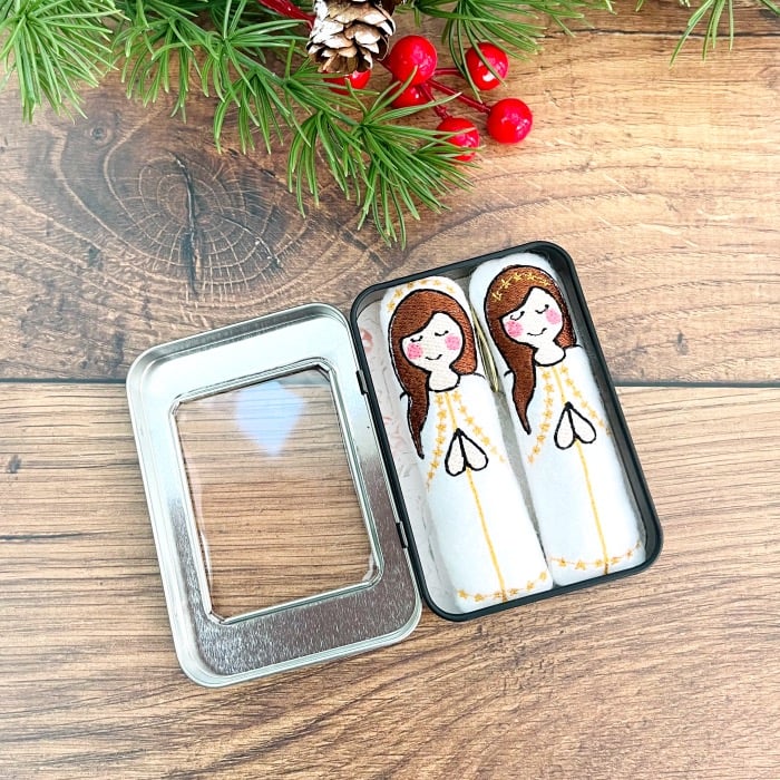 These adorable little Angel or Drummer Hanging Decorations presented in a lovely little tin to keep them safe would make a great addition to your Christmas tree or give as a gift for a stocking filler or secret Santa.