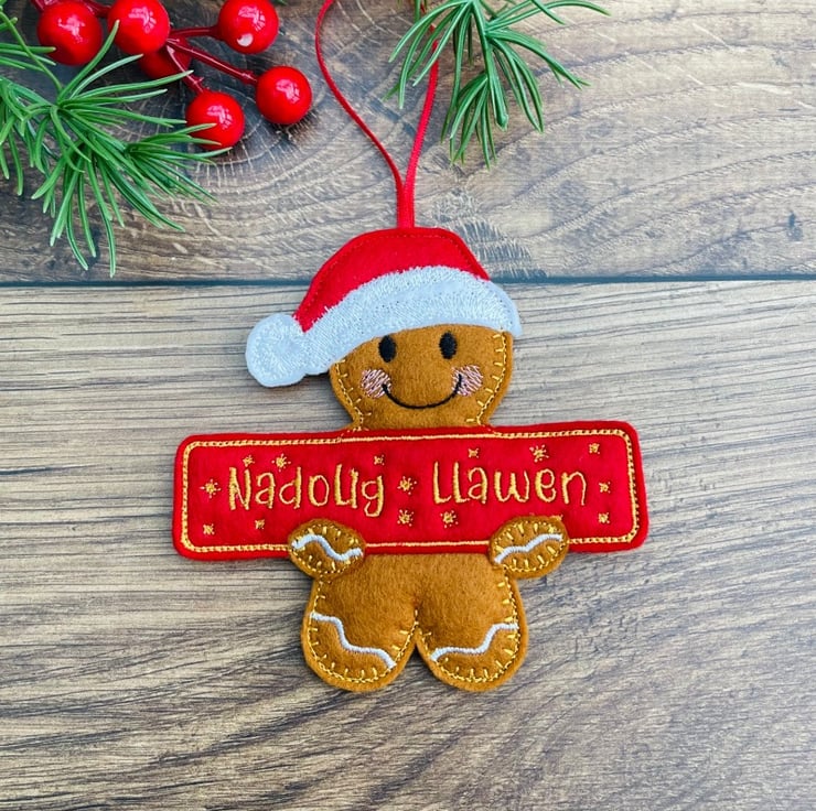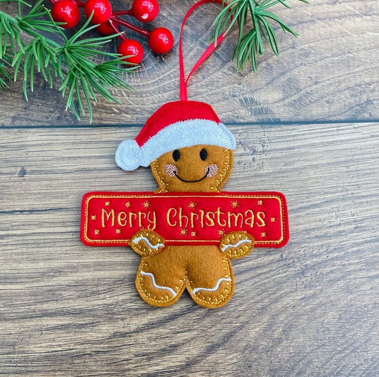 A handcrafted Gingerbread Holding A Merry Christmas Banner would make a great hanging decoration for your Christmas tree, a stocking filler or even use as gift tags.