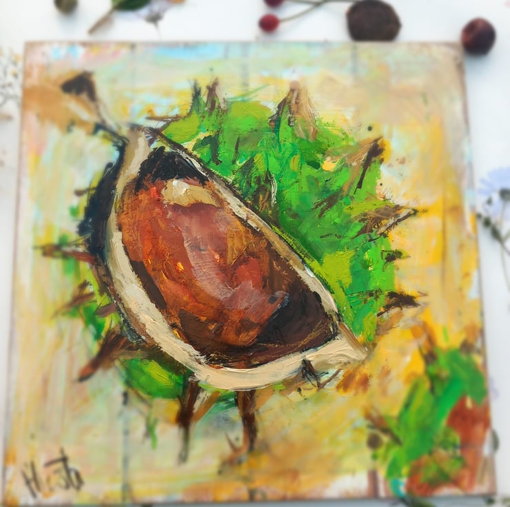 This confident painting is strong and bold, rich in texture and vibrant. 35 cm square on mdf board .you could hang it like this or would look very contemporary in a white frame to set of the colour. A one off.