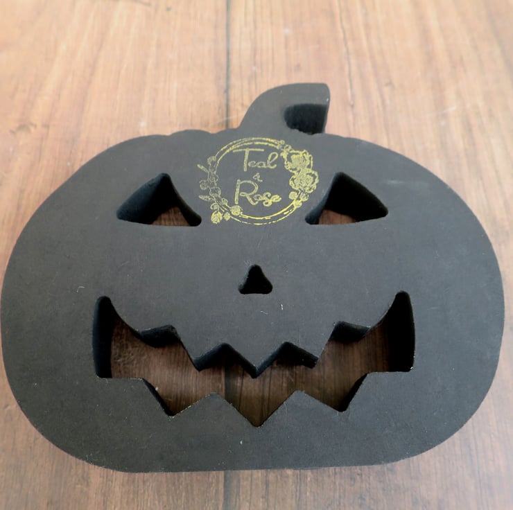 The back is painted a deep grey and stamped in gold with the Teal and Rose Designs logo.