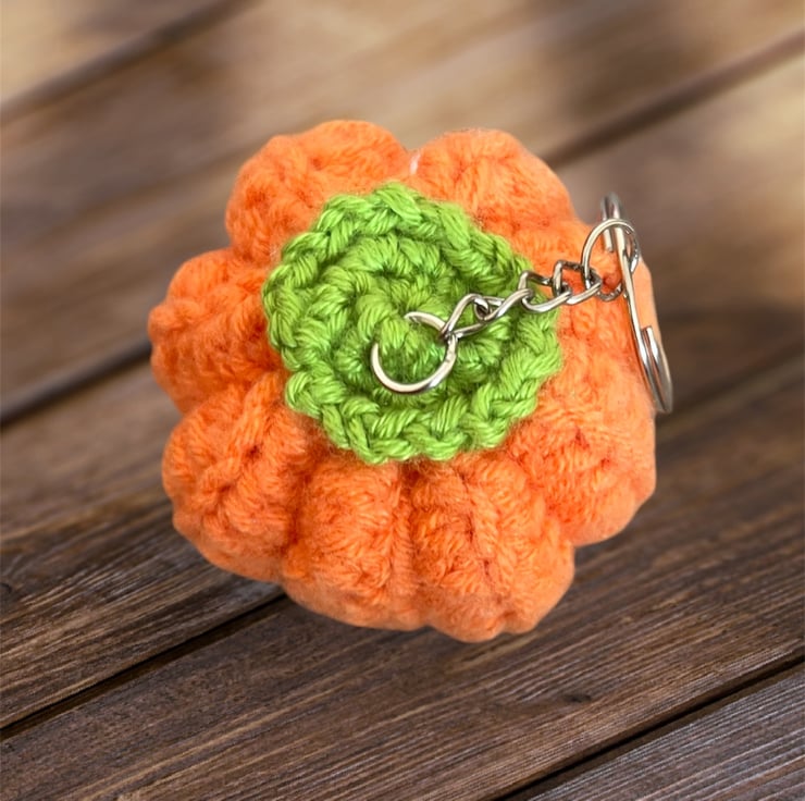 Celebrate the spooky season with this adorable handmade crochet pumpkin keychain! Perfect for adding a touch of festive charm to your keys, bags, or backpacks, this tiny pumpkin is meticulously crafted with vibrant orange yarn and topped with a cute green stem.