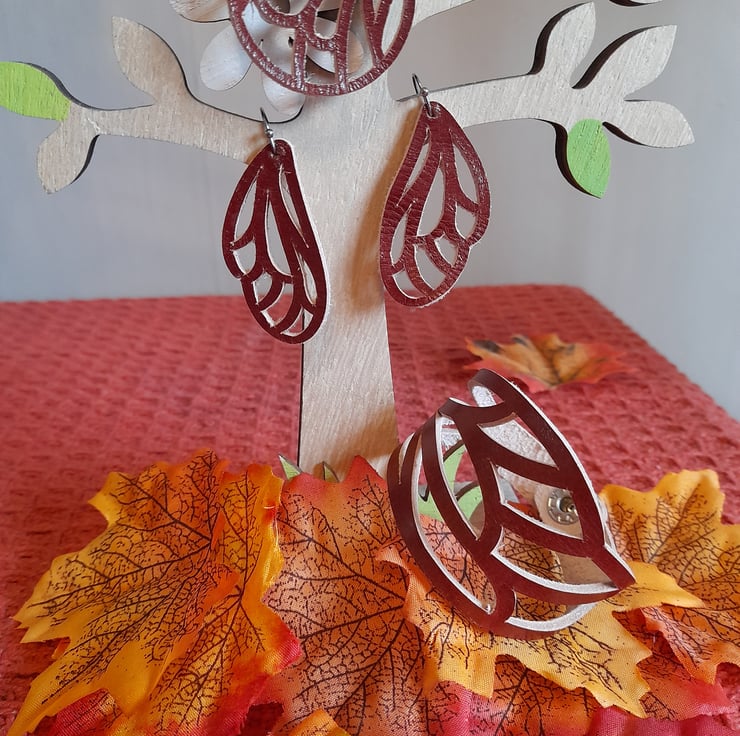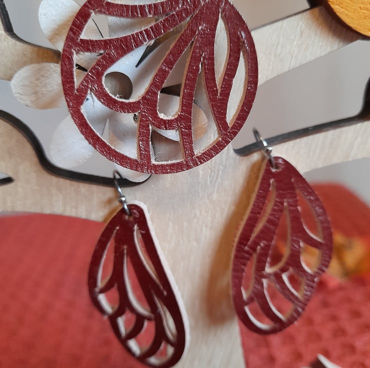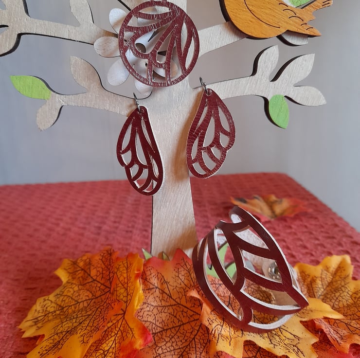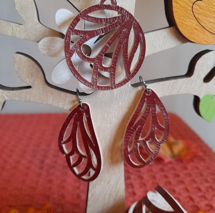 Lovely Dark Red Cuff Set, inspired by the wings of a dragonfly. Soft leather with a suede back. .Gorgeous for Autumn as a gift for yourself or for Christmas, Birthdays etc.
