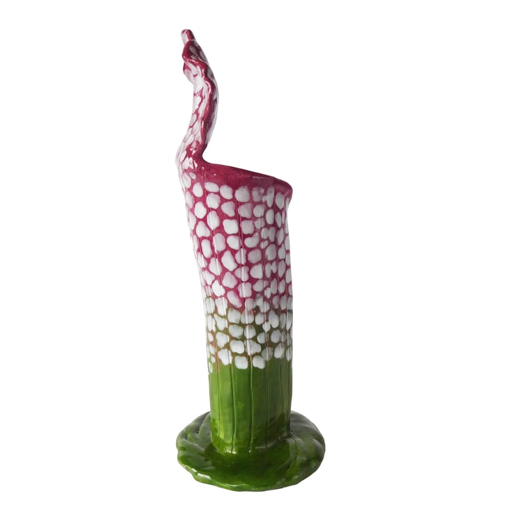 This piece is inspired by the carnivorous Pitcher plant. The particular species is Sarracenia Leucophylla.