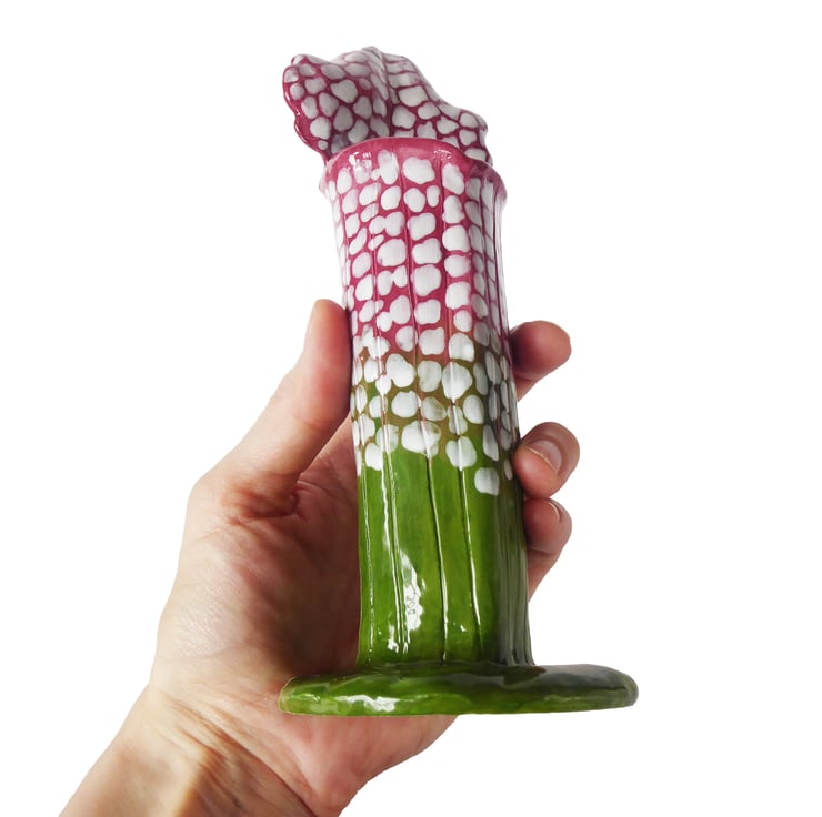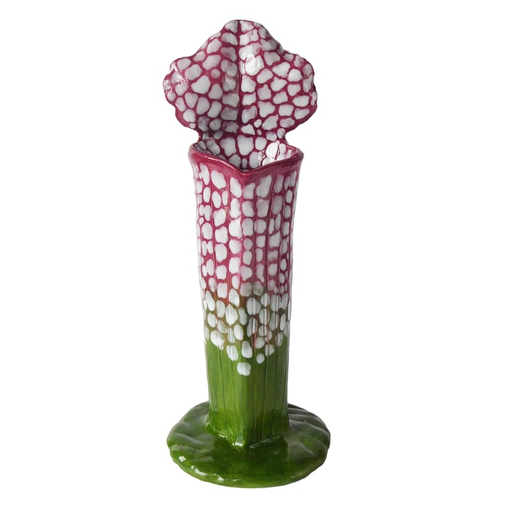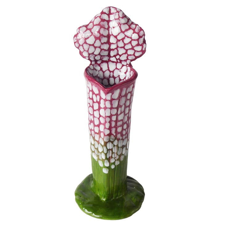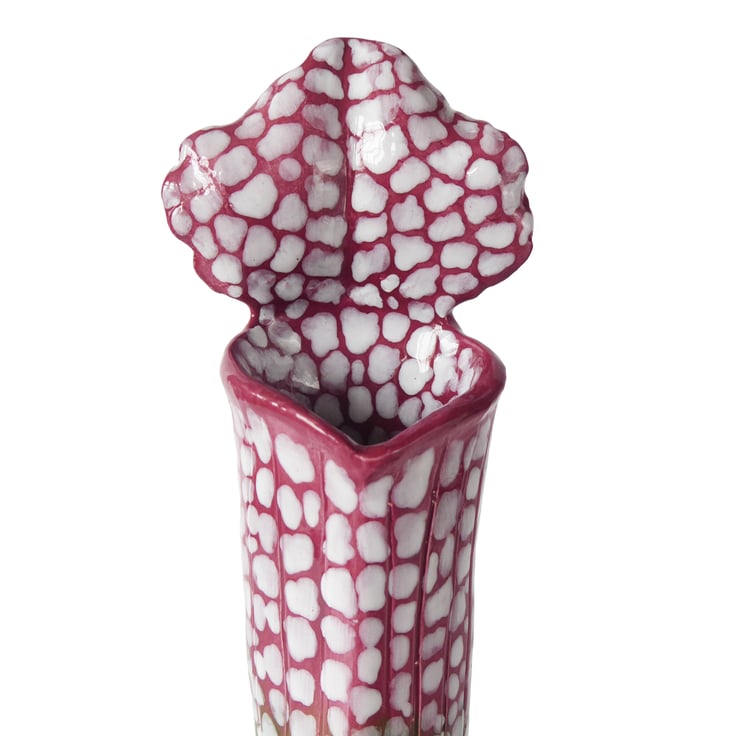 Pitcher Plant Porcelain Pot. The Species is Sarracenia Leucophylla.